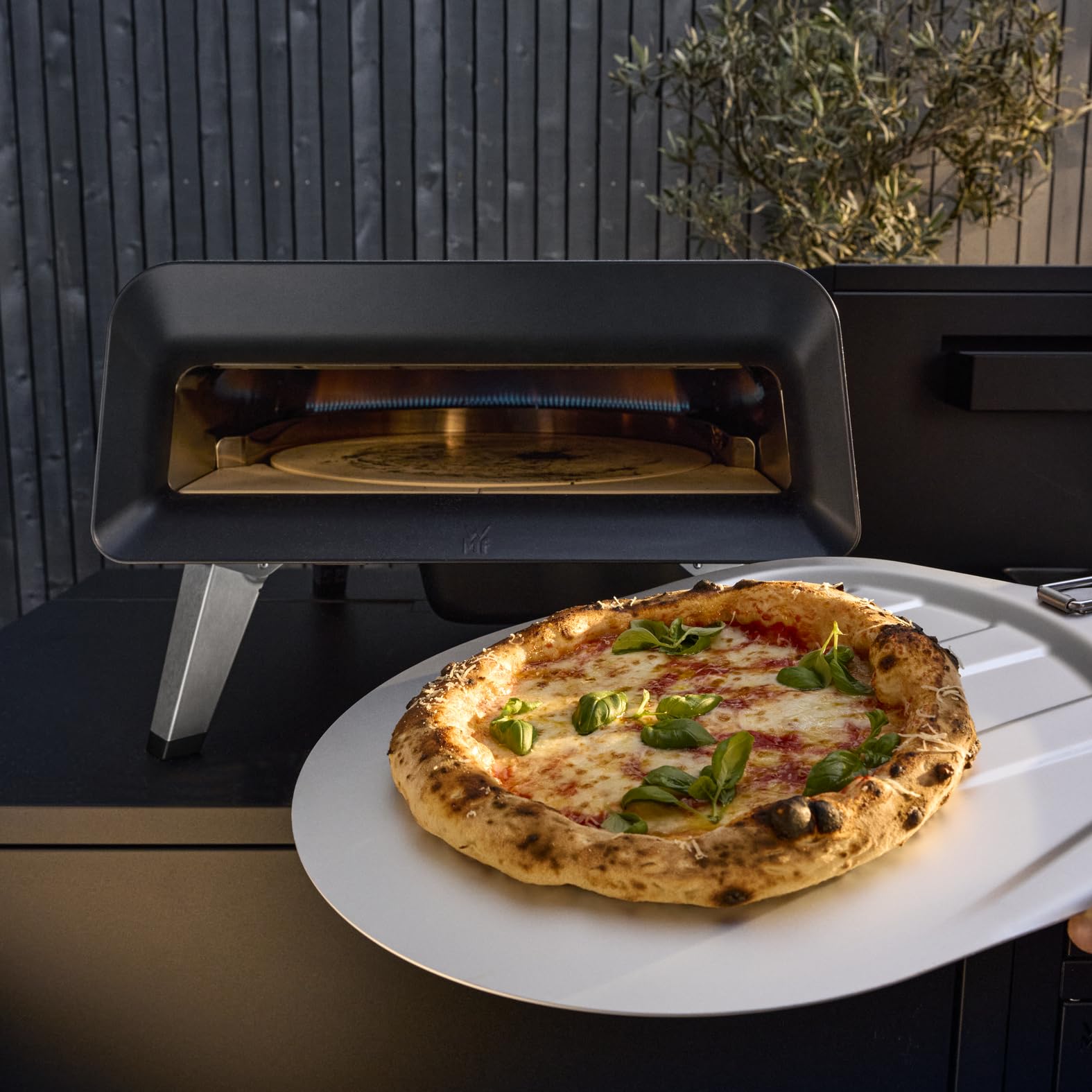 WMF Pizzaiolo Pro Pizzaofen, 400°C Backtemperatur, großer Pizzastein (Ø 40 cm), automatische Drehmechanik, integrierte Temperaturüberwachung für perfekte Ergebnisse in 90 Sek., Gas Pizzaofen, schwarz