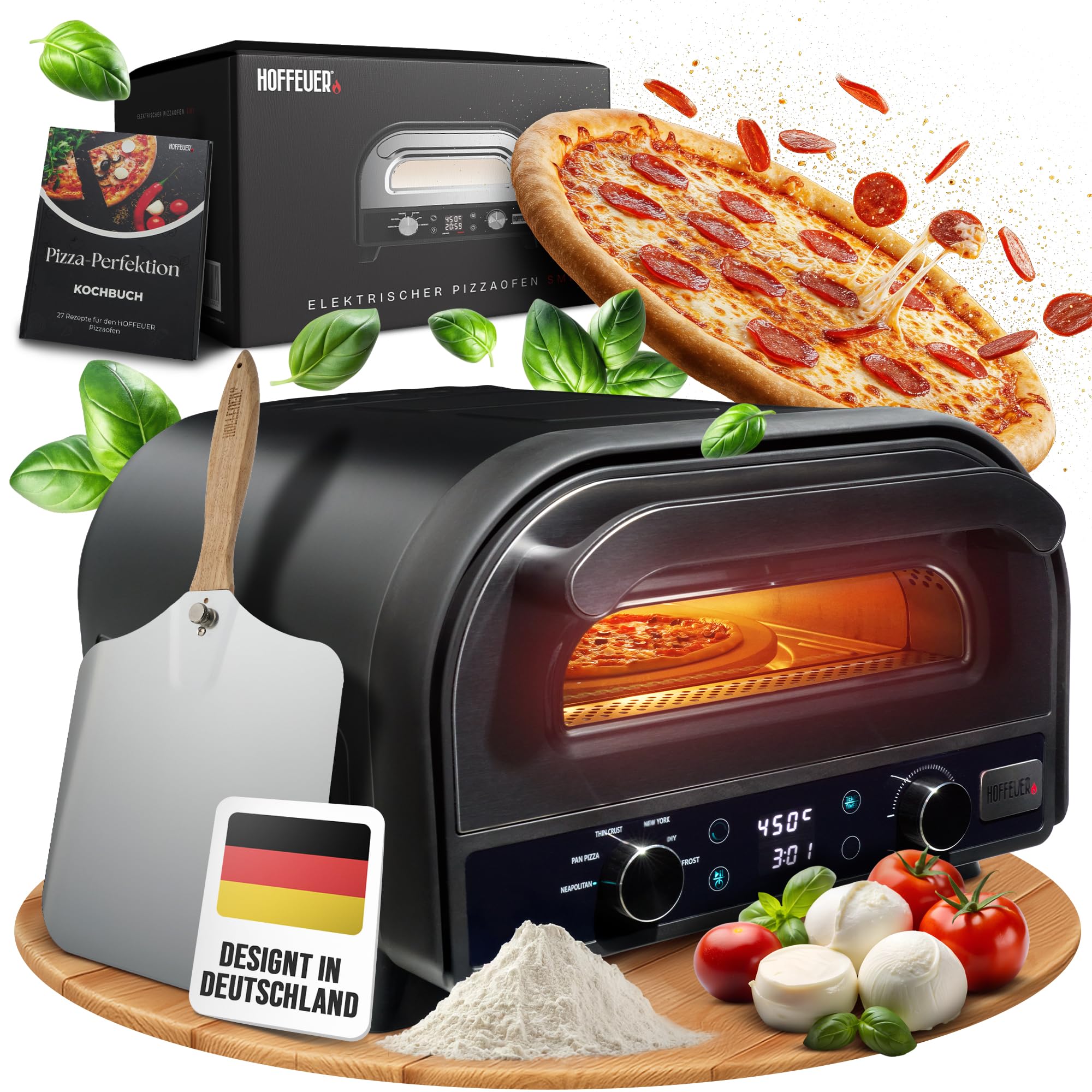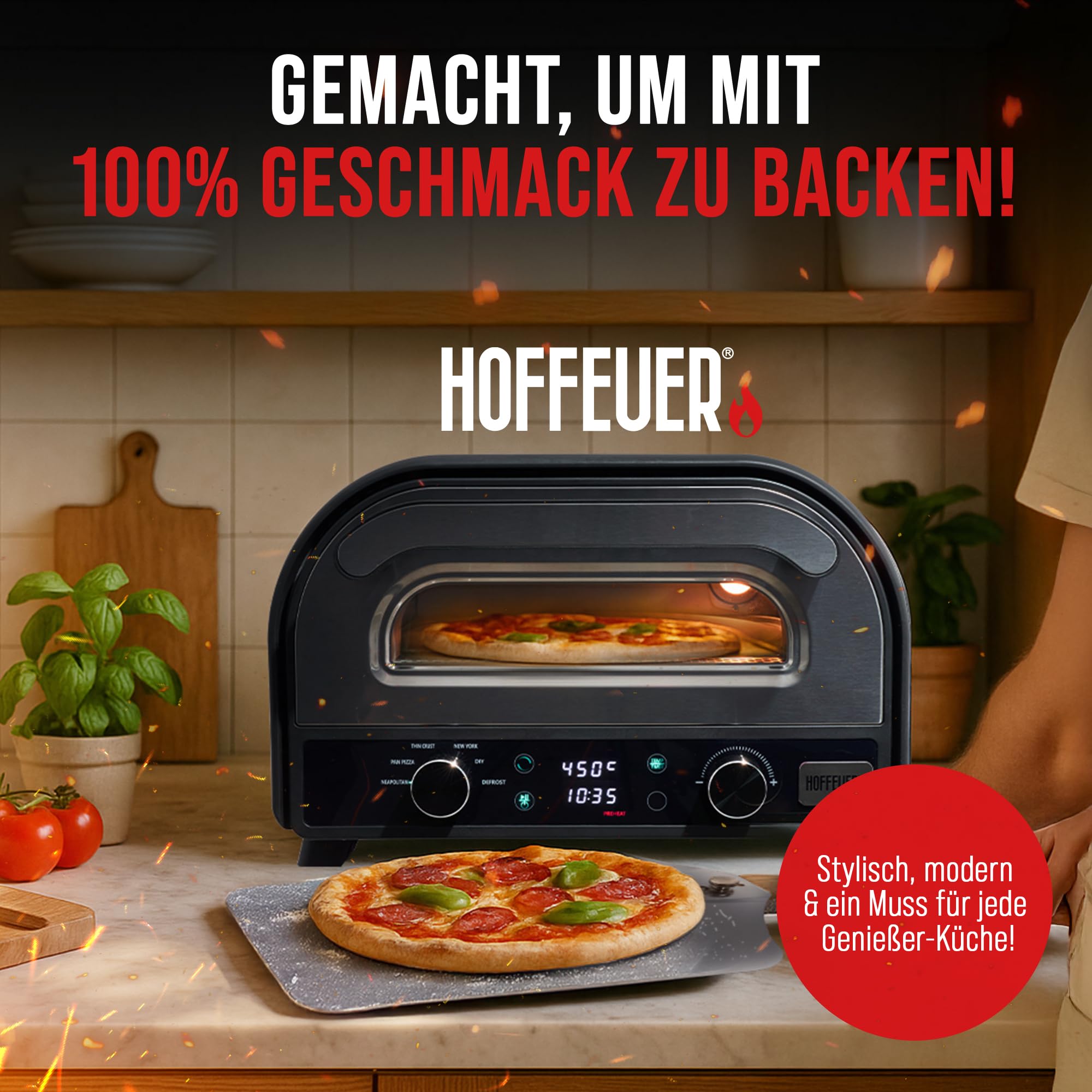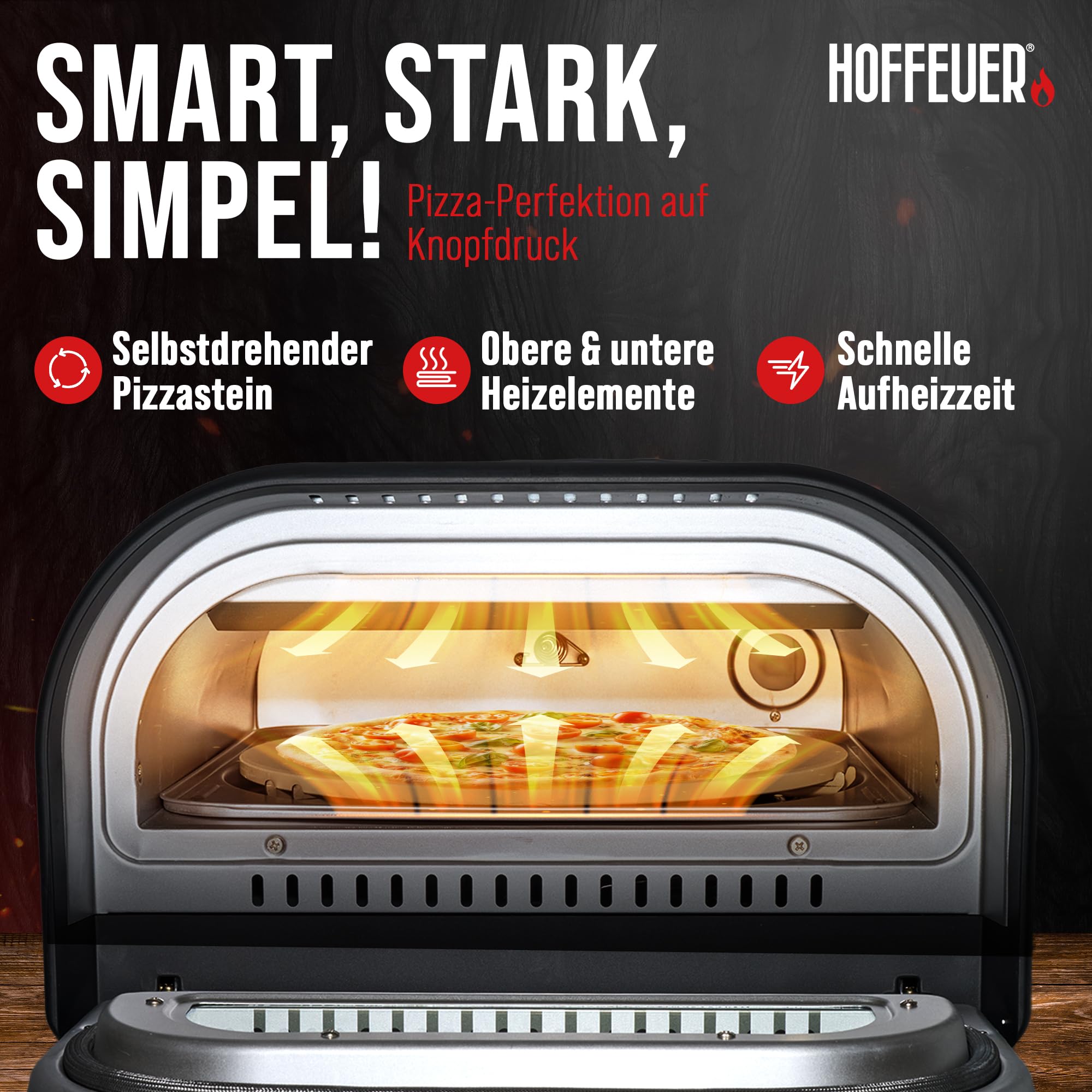 HOFFEUER Pizzaofen elektrisch β Profi Elektro-Pizza Ofen fΓΌr Zuhause mit Pizzastein, Drehfunktion & ZubehΓΆr | Pizza wie aus dem Steinofen, Flammkuchenofen | Elektrischer Pizzamaker | Grill Oven