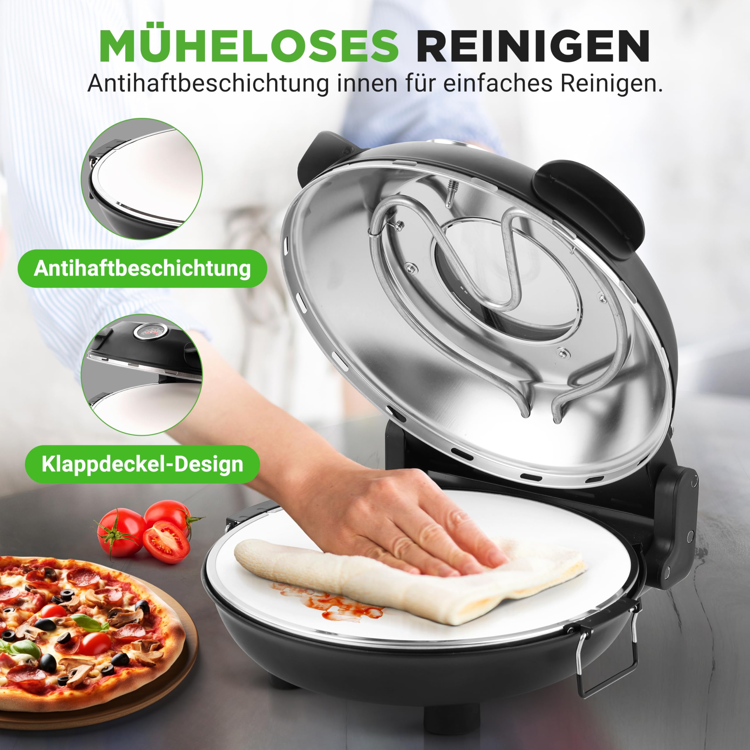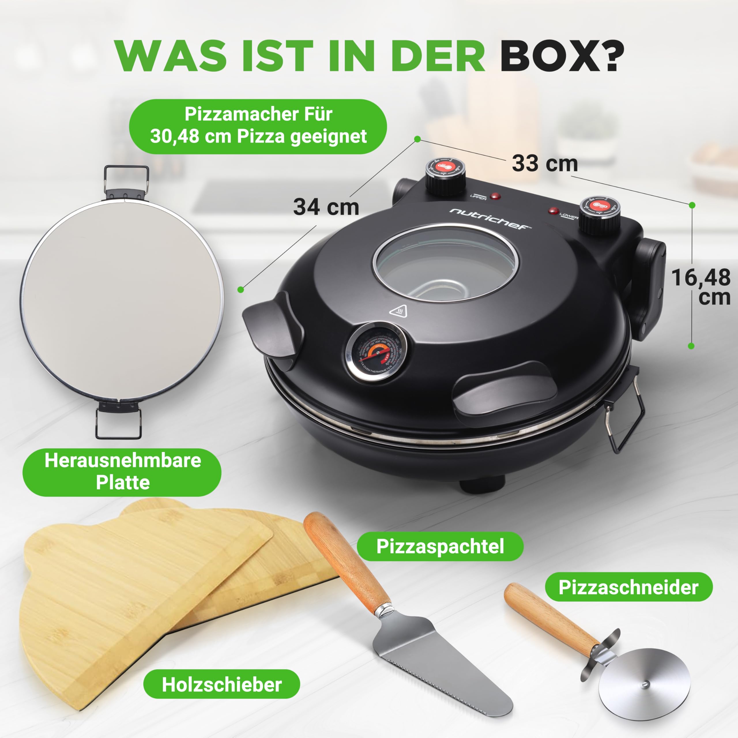NutriChef Pizzaofen Stein – 30,5 cm, 427 °C, Thermometer, Antihaft, Schwarz - Knusprige Pizza wie beim Italiener – Kompakt, Sichtfenster, Ober-/Unterhitze
